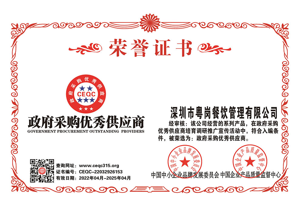 深圳市粵崗餐飲管理有限公司,是一家集蔬菜種植和農副產品配送為一體的專業(yè)型餐飲公司,主要為學校、工廠企事業(yè)機關單位提供蔬菜和農副產品配送服務。公司自成立以來始終以質優(yōu)價廉、服務至上為原則,嚴格按照ISO:9001國際標準體系進行管理。同時建立了行業(yè)領先的配送中心、大型冷庫和保鮮庫、檢測中心以及專業(yè)化的配送團隊,能長期安全、穩(wěn)定、準時的配送貨物。我們所有蔬菜均經過初步加工、無黃葉,無泥沙等雜質,利用率達97%以上...保障向用戶提供的各類食材的衛(wèi)生和質量。公司為了適應不同客戶的需求,配有專業(yè)人員和配送車輛,實行“一對一”的服務體制,一心一意的為客戶服務,秉承粵崗誠實守信、服務第一、客戶至上的服務標準,真正讓客戶花最少的錢吃最好的菜。粵崗多年來何以欣欣向榮,因為我們知道只有勇于擔當責任,才能承擔更大的責任,就是因為 粵崗員工貫徹公司態(tài)度決定一切、細節(jié)決定成敗的真理,從質量抓起,從服務做起,才創(chuàng)造了如今的規(guī)?;?、統一性配送、專業(yè)化服務的粵崗。